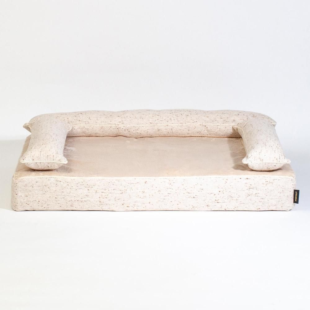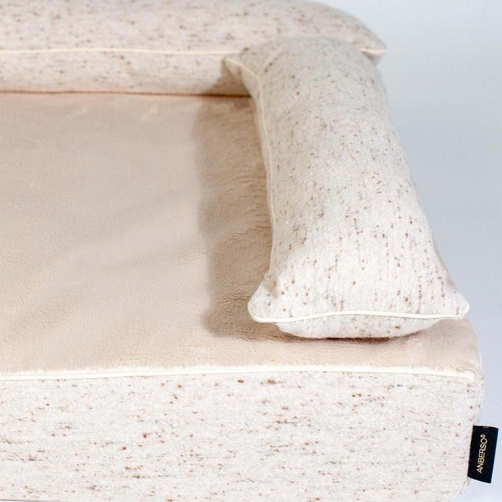 なめらかな肌触りで温かい上質なボアを上面に、ジャズネップが散りばめられたスタイリッシュな起毛シャンブレーツイルをベッドカバー側面・下面・クッション部分に使用しています。生地は上質で安心の日本製です。