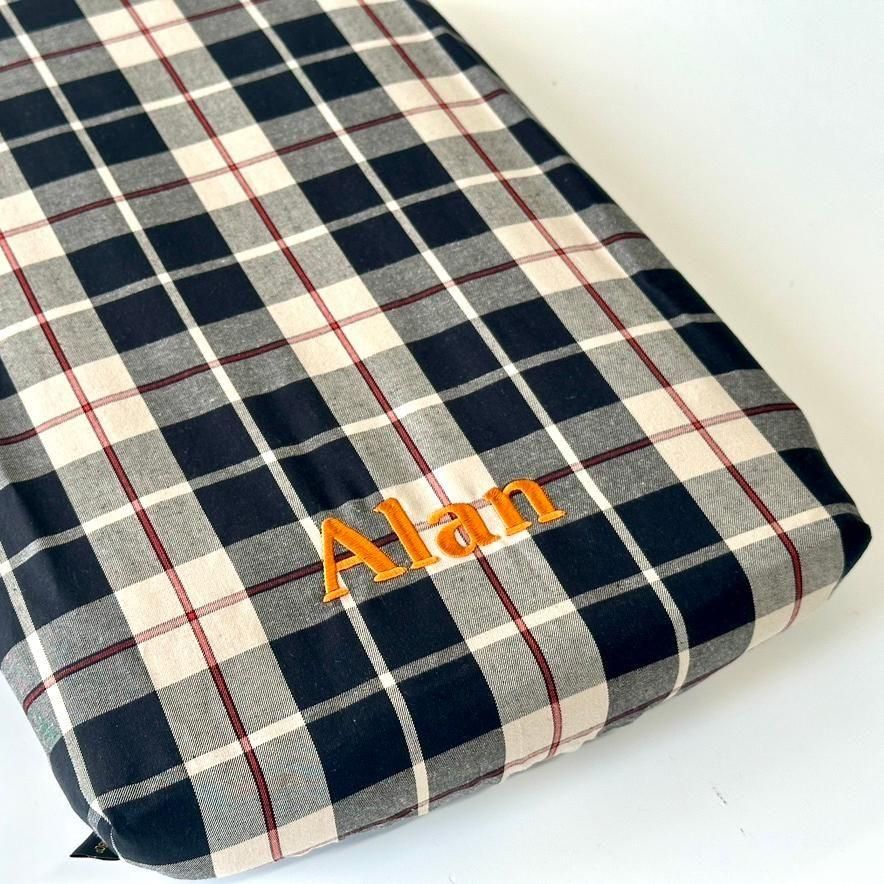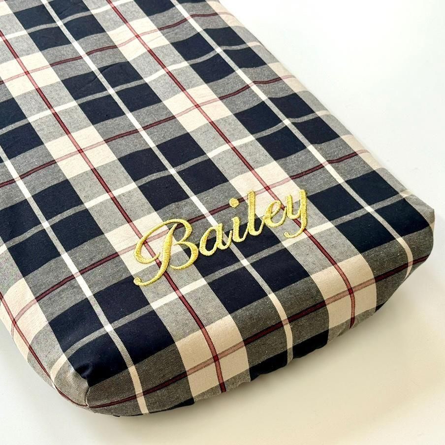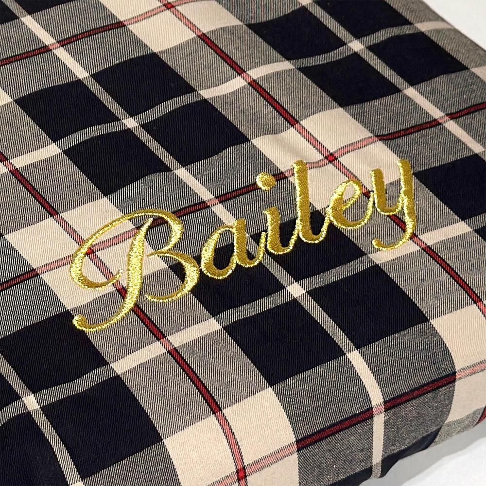ベッドカバーに愛犬・猫のネーム刺繍を入れてあなただけの特別アイテムに! 大人気オプションです!