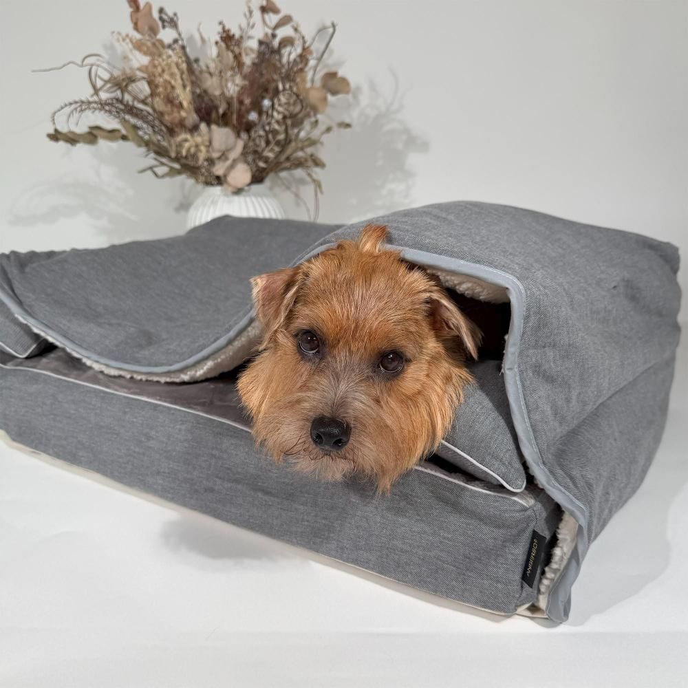 "ブランケットを掛けてあげても動くとずれ落ちてしまう”、そんな悩みを解決するのが寒がりのワンちゃんにおすすめの「モグラー」です。モグラーは熱が逃げにくい構造のベッドコンフォーターです。十分な高さがありますので奥の方まで潜れます。モグラーは全てのベッド(キャリー用ベッドは除く)にご利用いただけます。