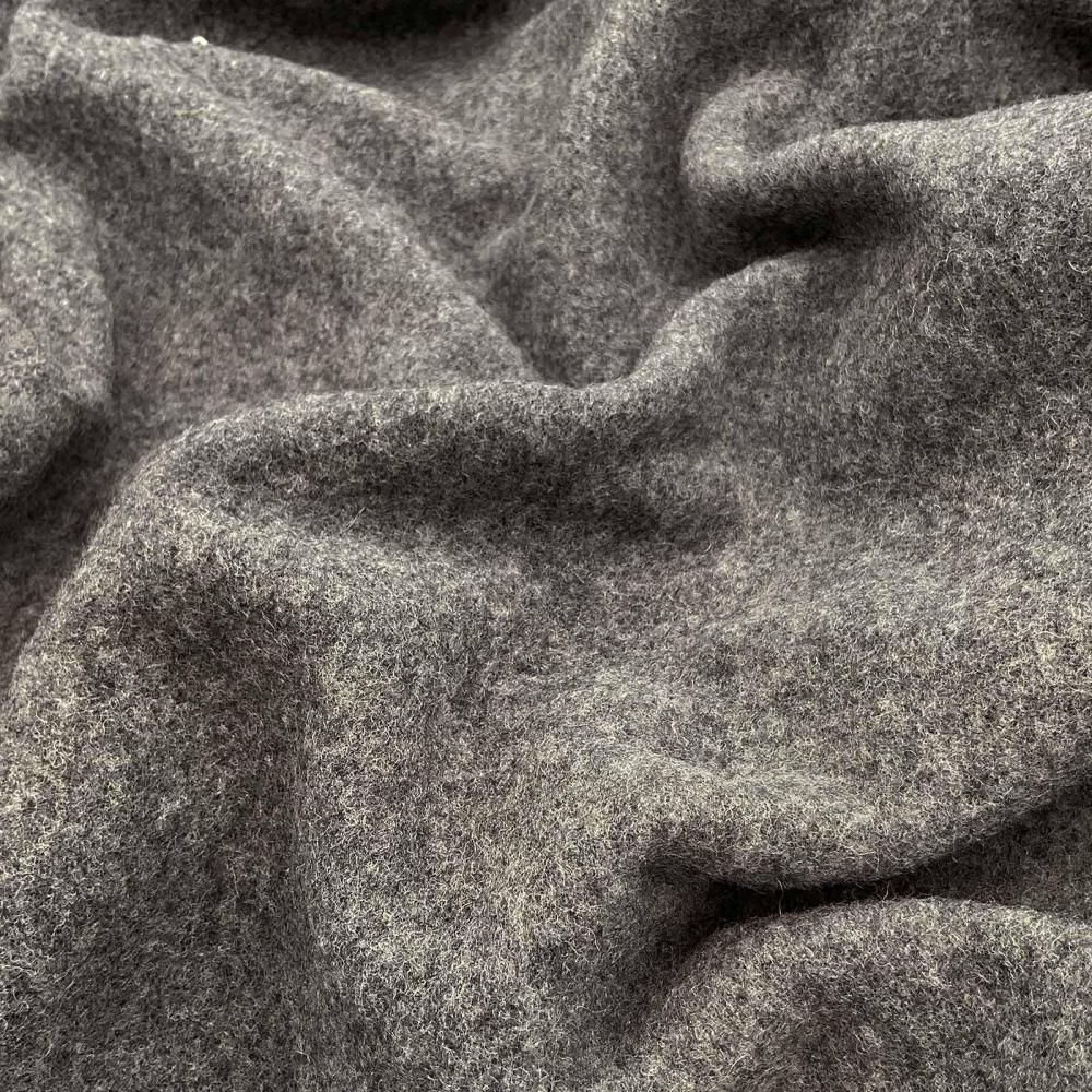 紡毛1/14のウール/ナイロンフラノにナッピング調の起毛加工を施した高級な先染めの中肉厚素材です。あたたかみのあるルックスが特徴で、ふかふかしたやわらかな肌ざわりと肉厚ながら軽やかな手持ち感が秋冬のアイテムにぴったりです。
