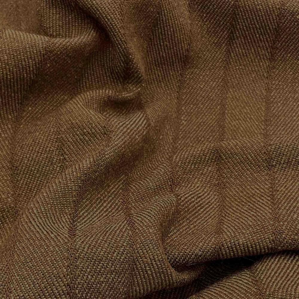 リサイクルウールを使用した、高級な中肉厚の先染め素材です。裏面に起毛を施し、ウールの自然な膨らみと嵩高さを引き立てる風合いに仕上げました。立体感のあるヘリンボン組織をベースにストライプ柄を表現した、深みのあるクラシカルなルックスの素材です。